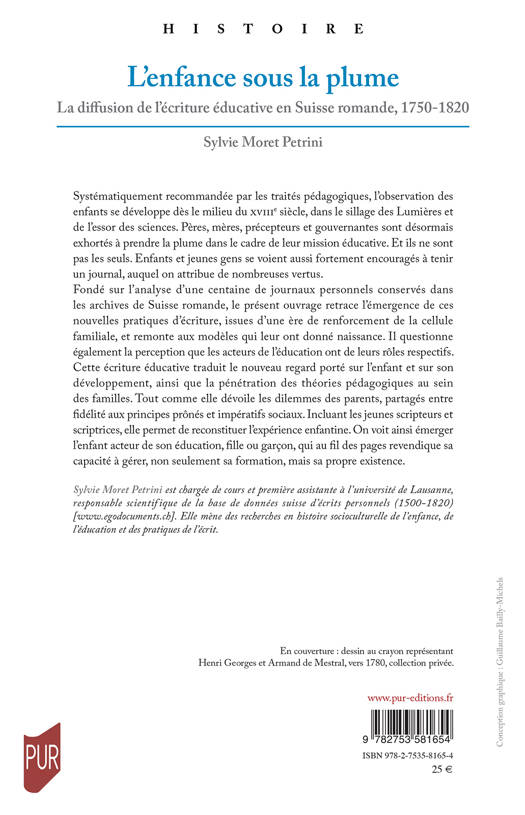 Systématiquement recommandée par les traités pédagogiques, l'observation des enfants se développe dès le milieu du XVIIIe siècle, dans le sillage des Lumières et de l'essor des sciences. Pères, mères, précepteurs et gouvernantes sont désormais exhortés à prendre la plume dans le cadre de leur mission éducative. Et ils ne sont pas les seuls. Enfants et jeunes gens se voient aussi fortement encouragés à tenir un journal, auquel on attribue de nombreuses vertus.