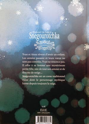 Yvan et Anna rêvent d’avoir un enfant. Les années passent et leurs voeux ne sont pas comblés. Yvan ne renonce pas. Il offre à sa femme une mystérieuse petite fille, née de tout son amour et de flocons de neige… "Snegourotchka" est un conte traditionnel russe dont le personnage mythique hante depuis toujours la taïga.