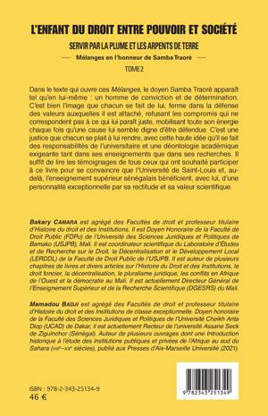 Dans le texte qui ouvre ces Mélanges, le doyen Samba Traoré apparaît tel qu'en lui-même : un homme de conviction et de détermination. C'est bien l'image que chacun se fait de lui, ferme dans la défense des valeurs auxquelles il est attaché, refusant les compromis qui ne correspondent pas à ce qui lui paraît juste, mobilisant toute son énergie chaque fois qu'une cause lui semble digne d'être défendue. Il suffit de lire les témoignages de tous ceux qui ont souhaité participer à ce livre pour se convaincre que l'Université de Saint-Louis et, au delà, l'enseignement supérieur sénégalais bénéficient, avec lui, d'une personnalité exceptionnelle par sa rectitude et sa valeur scientifique.