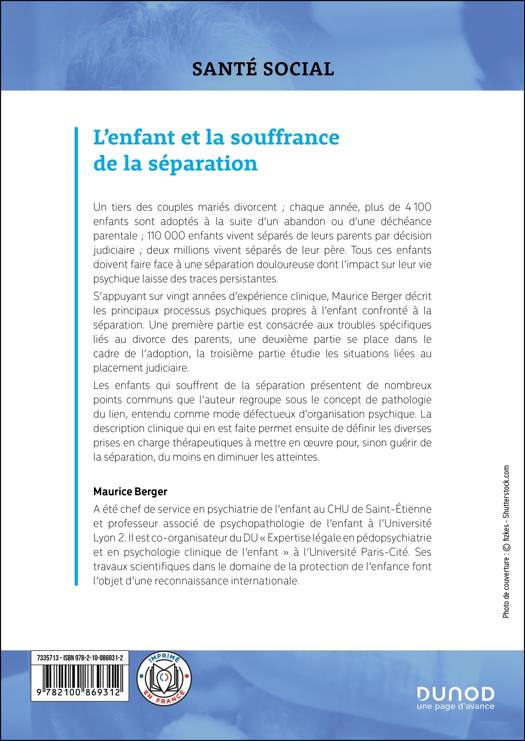 Toute séparation douloureuse a un impact sur la vie psychique des enfants qui laisse des traces persistantes. Maurice Berger décrit les principaux processus psychiques propres à l’enfant confronté à la séparation. Une première partie est consacrée aux troubles spécifiques liés au divorce des parents, une deuxième partie se place dans le cadre de l’adoption, la troisième partie étudie les situations liées au placement judiciaire.