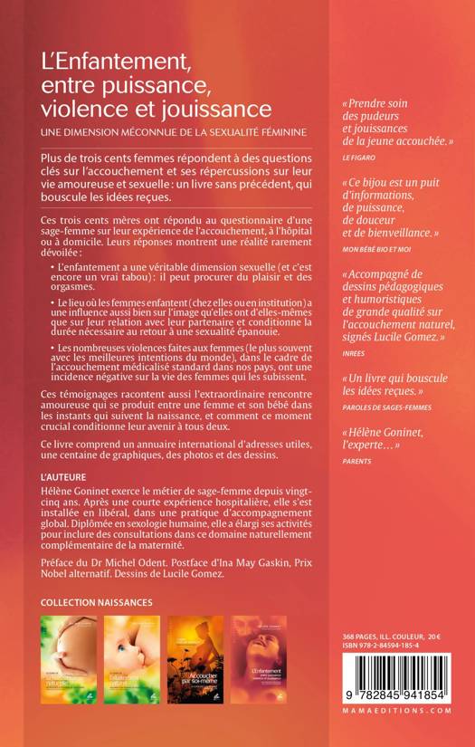 Ces trois cents mères ont répondu au questionnaire d'une sage-femme sur leur expérience de l'accouchement, à l'hôpital ou à domicile. Leurs réponses montrent une réalité rarement dévoilée :• L'enfantement a une véritable dimension sexuelle (et c'est encore un vrai tabou) : il peut procurer du plaisir et des orgasmes.• Le lieu où les femmes enfantent (chez elles ou en institution) a une influence aussi bien sur l'image qu'elles ont d'elles-mêmes que sur leur relation avec leur partenaire et conditionne la durée nécessaire au retour à une sexualité épanouie.• Les nombreuses violences faites aux femmes (le plus souvent avec les meilleures intentions du monde), dans le cadre de l'accouchement médicalisé standard dans nos pays, ont une incidence négative sur la vie des femmes qui les subissent.Ces témoignages racontent aussi l'extraordinaire rencontre amoureuse qui se produit entre une femme et son bébé dans les instants qui suivent la naissance, et comment ce moment crucial conditionne leur avenir à tous deux.Ce livre comprend un annuaire international d'adresses utiles (le MamaScope).