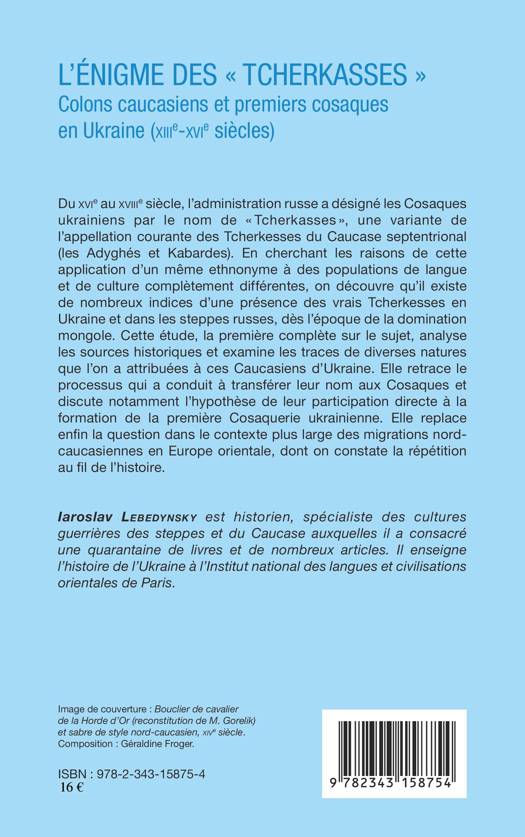 Du XVIè au XVIIIè siècle, l’administration russe a désigné les Cosaques ukrainiens par le nom de « Tcherkasses », une variante de l’appellation courante des Tcherkesses du Caucase septentrional. On découvre ainsi qu’il existe de nombreux indices d’une présence des vrais Tcherkesses en Ukraine et dans les steppes russes, dès l’époque de la domination mongole. Cette étude retrace le processus qui a conduit à transférer leur nom aux Cosaques et pose l’hypothèse de leur participation directe à la formation de la première Cosaquerie ukrainienne. Elle replace la question dans le contexte plus large des migrations nord-caucasiennes en Europe orientale, dont on constate la répétition au fil de l’Histoire.