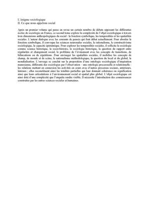 L’énigme sociologique se compose de deux tomes. Ce second volume propose un dialogue sur trois dimensions anthropologiques du social.
