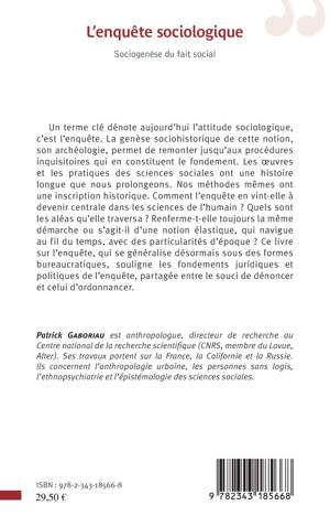 Un terme clé dénote aujourd'hui l'attitude sociologique, c'est l'enquête. La genèse sociohistorique de cette notion, son archéologie, permet de remonter jusqu'aux procédures inquisitoires qui en constituent le fondement. Les uvres et les pratiques des sciences sociales ont une histoire longue que nous prolongeons. Nos méthodes même ont une inscription historique. Comment l'enquête en vint-elle à devenir centrale dans les sciences de l'humain ? Quels sont les aléas qu'elle traversa ? Renferme-t-elle toujours la même démarche ou s'agit-il d'une notion élastique, qui navigue au fil du temps, avec des particularités d'époque ?