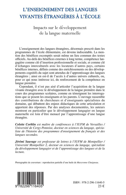 L'enseignement des langues étrangères, désormais prescrit dans les programmes de l'école élémentaire, est devenu indiscutable. La mention des bénéfices escomptés serait même un lieu commun des textes officiels. Cependant, il n'est pas aisé d'articuler l'acquisition de la langue vivante étrangère avec le développement de la langue première dans le cours des programmes scolaires. Néanmoins, le développement langagier en langue maternelle est loin d'être menacé par l'apprentissage d'une langue étrangère.