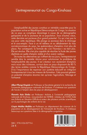 L'employabilité des jeunes constitue un véritable casse-tête pour la population active en République Démocratique du Congo. La situation de ce pays se complique davantage à cause de sa démographie galopante et de la jeunesse de sa population. Sous d'autres cieux, cette dernière est porteuse d'un grand potentiel. Ce qui n'est pas le cas pour cette république. Elle plonge sa jeunesse dans le chômage et le sous-emploi. Face à un tel tableau et au délabrement du tissu socioéconomique du pays, les quémandeurs d'emplois n'ont plus de place. Par conséquent, la formule de j'ai l'honneur ne tient plus. Elle est révolue. Elle n'est plus capable de résorber la foule des jeunes diplômés en quête d'emploi stable et d'un avenir radieux. De toutes les alternatives qui s'offrent de nos jours, l'entrepreneuriat semble être le remède idoine pour solutionner le problème de l'employabilité des jeunes. Il est créateur non seulement d'emplois mais aussi des richesses, surtout dans un pays disposant de 80 % des terres arables comme la République Démocratique du Congo. D'où l'importance de repenser son système éducatif en intégrant l'entrepreneuriat à tous les niveaux de formation. Cela pourrait générer un potentiel d'emplois énorme rien qu'avec l'agriculture, l'élevage et l'artisanat.