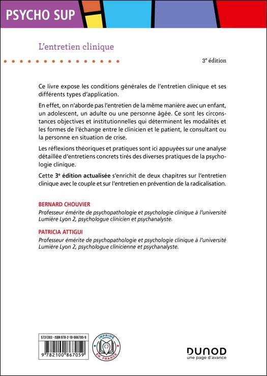 Cette 3eédition expose les conditions générales de l’entretien clinique et ses différents types d’application. On n’aborde pas l’entretien de la même manière avec un enfant, un adolescent, un adulte ou une personne âgée. De même, ce sont les circonstances objectives et institutionnelles qui déterminent les modalités et les formes de l’échange entre le clinicien et le patient, le consultant ou la personne en situation de crise. Les réflexions théoriques et pratiques sont ici appuyées sur une analyse détaillée d’entretiens concrets tirés des diverses pratiques de la psychologie clinique.