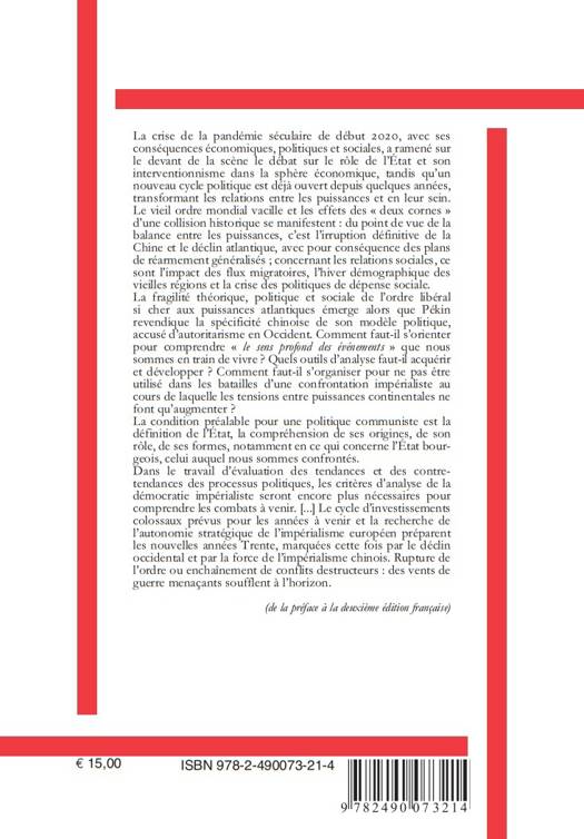 La fonction de l’État est donc définie par le fait qu’il s’agit d’un instrument de la classe dominante. Il doit accomplir deux tâches : dominer la classe exploitée et unifier la classe dominante. Une double « mission » découlant de la double nature du processus de production et de répartition de la plus-value, qui constitue la base matérielle sur laquelle se fonde la société : unie pour extorquer la plus-value, la bourgeoisie se divise en fractions et en groupes lors de son partage. Elle exprime donc une pluralité de pouvoirs économiques qui doivent être représentés et conciliés au niveau politique. Ainsi, quelle est la meilleure enveloppe politique pour le capitalisme ? Cervetto se relie à Marx qui, dans le livre III du Capital, identifie la forme démocratique comme la « forme spécifique » de l’État capitaliste et voit les formes de l’État capitaliste comme des « variations » et des « gradations » de la « forme spécifique ». Pourquoi la démocratie est-elle la meilleure enveloppe ? Dans « Marché mondial et formes politique », Cervetto explique : « La démocratie comme forme spécifique du mode de production capitaliste est, en ce sens, la meilleure enveloppe, c’est-à-dire l’enveloppe qui sert le mieux le mécanisme de transmission permettant aux intérêts économiques des groupes de la classe dominante de se transformer en volontés et en décisions politiques. L’enveloppe démocratique permet au mécanisme de détermination de fonctionner avec le minimum de frictions et le maximum de résultats, puisqu’elle facilite la formation de l’intérêt général de la classe dominante en combinant ses intérêts particuliers et sectoriels. »