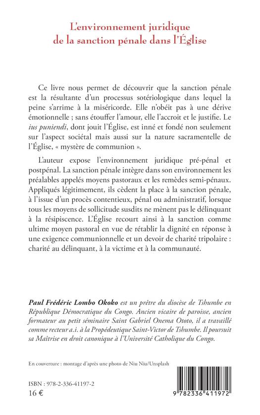 Ce livre nous permet de découvrir que la sanction pénale est la résultante d'un processus sotériologique dans lequel la peine s'arrime à la miséricorde. Elle n'obéit pas à une dérive émotionnelle; sans étouffer l'amour, elle l'accroit et le justifie. Le ius puniendi, dont jouit l'Église, est inné et fondé non seulement sur l'aspect sociétal mais aussi sur la nature sacramentelle de l'Église, mystère de communion . L'auteur expose l'environnement juridique pré-pénal et postpénal. La sanction pénale intègre dans son environnement les préalables appelés moyens pastoraux et les remèdes semi-pénaux. Appliqués légitimement, ils cèdent la place à la sanction pénale, à l'issue d'un procès contentieux, pénal ou administratif, lorsque tous les moyens de sollicitude susdits ne mènent pas le délinquant à la résipiscence. L'Église recourt ainsi à la sanction comme ultime moyen pastoral en vue de rétablir la dignité en réponse à une exigence communionnelle et un devoir de charité tripolaire: charité au délinquant, à la victime et à la communauté.