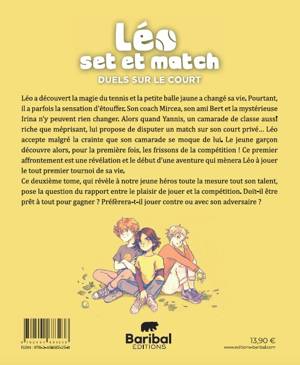 Léo a découvert la magie du tennis et la petite balle jaune a changé sa vie. Pourtant, il a parfois la sensation d’étouffer. Son coach Mircea, son ami Bert et la mystérieuse Irina n’y peuvent rien changer. Alors quand Yannis, un camarade de classe aussi riche que méprisant, lui propose de disputer un match sur son court privé… Léo accepte malgré la crainte que son camarade se moque de lui. Le jeune garçon découvre alors, pour la première fois, les frissons de la compétition ! Ce premier affrontement est une révélation et le début d’une aventure qui mènera Léo à jouer le tout premier tournoi de sa vie. Ce deuxième tome, qui révèle à notre jeune héros toute la mesure tout son talent, pose la question du rapport entre le plaisir de jouer et la compétition. Doit-il être prêt à tout pour gagner ? Préfèrera-t-il jouer contre ou avec son adversaire ?