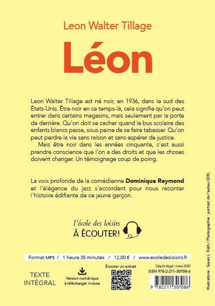 Léon Walter Tillage est né noir, en 1936, dans le sud des États-Unis. Être noir en ce temps-là, cela signifie qu'on peut entrer dans certains magasins, mais seulement par la porte de derrière. Qu'on doit se cacher quand le bus scolaire des enfants blancs passe, sous peine de se faire tabasser. Qu'on peut perdre la vie sans raison et sans espérer de justice. Mais être noir dans les années cinquante, c'est aussi prendre conscience que l'on a des droits et que les choses doivent changer. Un témoignage coup de poing. La voix profonde de la comédienne Dominique Reymond et l'élégance du jazz s'accordent pour nous raconter l'histoire édifiante de ce jeune garçon.
