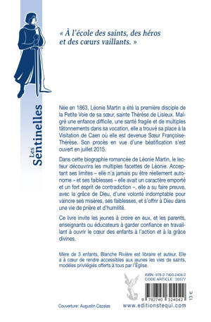 Dans cette biographie romancée de Léonie Martin, le lecteur découvrira les multiples facettes de Léonie. Malgré une enfance pour le moins compliquée, elle a su faire preuve, avec la grâce de Dieu, d’une volonté indomptable pour vaincre ses misères, ses faiblesses, et s’offrir à Dieu dans une vie de prière et d’humilité. Léonie, très tôt, a dû faire face à ses limites. Mais au lieu de se révolter, elle les a acceptées, puis offertes à Dieu dans l'esprit de la Voie de l’enfance spirituelle. Une vie d'offrande, donc. Une vie d’effort. Un exemple encourageant qui nous montre que la sainteté est accessible à tous, à condition de le vouloir et de s'en donner les moyens ! Un modèle pour savoir accueillir avec joie chaque journée que le Seigneur nous offre, malgré nos croix. Léonie est l'incarnation de la Miséricorde et de l'Amour de Dieu pour tous, un espoir pour ceux qui désespèrent devant leurs faiblesses, leurs limites, une invitation à s'abandonner plus encore dans les bras de Dieu.