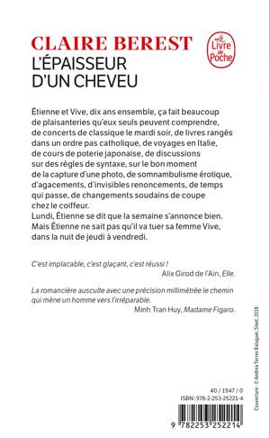 La romancière ausculte avec une précision millimétrée le chemin qui mène un homme vers l’irréparable. Minh Tran Huy, Madame Figaro.