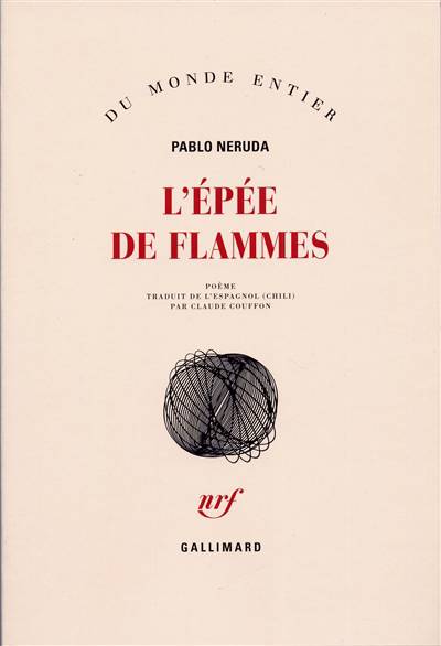 "Fable ou épopée ? L'Épée de flammes relate l'histoire de Rhodo, le patriarche fugitif, au moment où les dévastations détruisent l'homme sur la terre. Fondateur d'un royaume situé dans la grande solitude patagonique, Rhodo serait le dernier habitant du monde si, un jour, Rosie ne surgissait sur son territoire. Elle a abandonné les ruines d'or de la Ville des Césars - la cité légendaire vantée par les chroniqueurs espagnols - et elle apporte à ce nouvel Adam la jeunesse, la beauté, l'amour, la sensualité, transformant son désert en Éden de fraîcheur et de grâce. Mais le destin qui les a unis dans la violence et dans la joie brandit sur les deux amants son épée de flammes sous la forme d'un Volcan allumé par un Dieu jaloux et colérique. Ayant construit la nef sur laquelle ils fuiront le déluge austral, Rhodo et Rosie arrivent au terme de leurs aventures : en découvrant que Dieu est mort, ils prennent conscience de leur propre divinité. Fable et épopée - "sonate noire", affirme Neruda - L'Épée de flammes introduit dans les lettres universelles un nouveau couple d'amants tragiques, libérés de leur destin traditionnel par la volonté poétique." Claude Couffon.