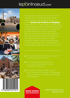 PATRICK CORNILLIE et KRISTIEN HANSEBOUT vous feront profiter pleinement de la nature et de l'environnement avec leur sélection des plus beaux itinéraires en boucle : 30 balades empruntant le réseau à points-noeuds, le long des abbayes et des brasseries, avec chaque fois, la possibilité d'opter pour un circuit court.
