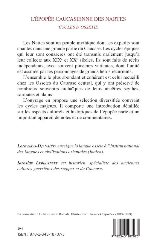 Les Nartes sont un peuple mythique dont les exploits sont chantés dans une grande partie du Caucase. Les cycles épiques qui leur sont consacrés ont été transmis oralement jusqu’à leur collecte aux XIXe et XXe siècles. Ils sont faits de récits indépendants, avec souvent plusieurs variantes, dont l’unité est assurée par les personnages de grands héros récurrents. L’ensemble le plus abondant et cohérent est celui recueilli chez les Ossètes du Caucase central. L’ouvrage en propose une sélection diversifiée couvrant les cycles majeurs. Il comporte une introduction détaillée sur les aspects culturels et historiques de l’épopée narte et un important appareil de notes et de commentaires.
