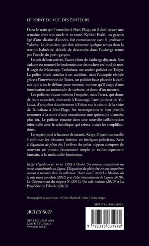 Le physicien Yukawa entame pour des raisons professionnelles un séjour dans la station balnéaire de Hari-plage. Le soir de son arrivée, l'autre client de l'auberge, un ancien policier de Tokyo, disparaît. Son cadavre est retrouvé le lendemain sur des rochers en bord de mer. Kusanagi, l'ami policier de Yukawa, et sa collègue Utsumi, sont chargés de mener discrètement l'enquête, parallèlement à la police locale. En renouant avec le couple d'enquêteurs déjà aperçu dans «Un café maison», Keigo Higashino livre une de ces intrigues subtiles et complexes dont il a le secret.