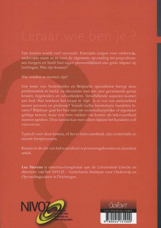 Een team van Nederlandse en Belgische specialisten brengt deze problematiek in beeld, na discussies met een zeer gevarieerde groep leraren, begeleiders en schoolleiders. Verschillende aspecten komen aan bod. Wat betekent het leraar te 'zijn': Is er wel een onderscheid tussen persoon en professie? Vanuit welke kennisbasis handelen leraren? Blijkbaar gaat het hier niet om wetenschappelijke of algemeen geldige kennis, maar zou men veeleer van kennis als bekwaamheid moeten spreken. Deze kennis kan men alleen tijdens het handelen zelf verwerven.