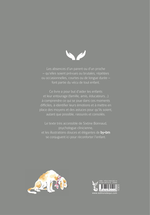 Psychologue clinicienne, Sixtine Bonnaud est fréquemment confrontée dans sa pratique aux comportements réactionnels des enfants, face à des situations de séparation et d’absence. Ces absences (qu’elles soient prévues ou brutales, de courtes ou de longues durées) font indéniablement partie du vécu de tout enfant et jalonnent donc son histoire. Elle a souhaité écrire ce livre pour aider les enfants, ainsi que leur famille, à comprendre ce qui se joue dans ces moments et à tout mettre en place pour être, autant que possible, rassuré et consolé. 1. Affronter sa colère 2. Se protéger de ses inquiétudes 3. Échapper à sa solitude 4. Vaincre son impatience 5. Résister à sa déception 6. Sortir de son incompréhension 7. Développer sa fierté 8. Surmonter sa tristesse 9. Dépasser sa jalousie 10. Accueillir la joie
