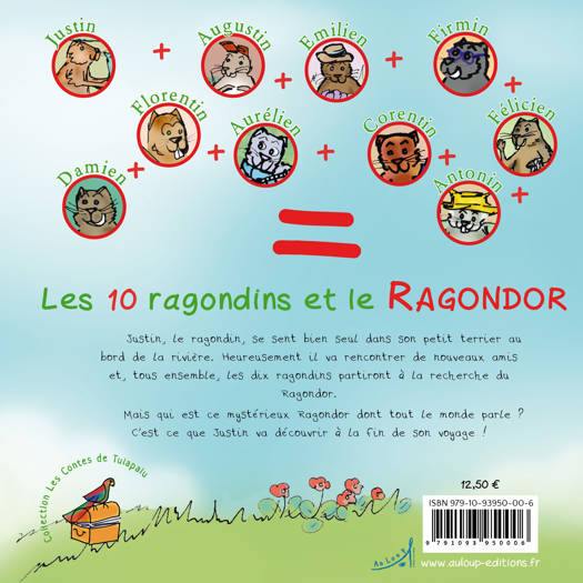 Justin, le ragondin, se sent bien seul dans son petit terrier au bord de la rivière. Heureusement il va rencontrer de nouveaux amis et, tous ensemble, les dix ragondins partiront à la recherche du Ragondor.Mais qui est ce mystérieux Ragondor dont tout le monde parle ? C´est ce que Justin va découvrir à la fin de son voyage !