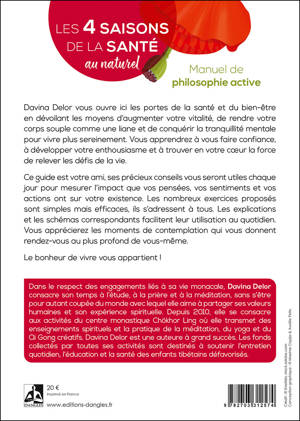Davina Delor vous ouvre ici les portes de la santé et du bien-être en dévoilant les moyens d’augmenter votre vitalité, de rendre votre corps souple comme une liane et de conquérir la tranquillité mentale pour vivre plus sereinement. Vous apprendrez à vous faire confiance, à développer votre enthousiasme et à trouver en votre cœur la force de relever les défis de la vie. Ce guide est votre ami, ses précieux conseils vous seront utiles chaque jour pour mesurer l’impact que vos pensées, vos sentiments et vos actions ont sur votre existence. Les nombreux exercices proposés sont simples mais efficaces, ils s’adressent à tous. Les explications et les schémas correspondants facilitent leur utilisation au quotidien. Vous apprécierez les moments de contemplation qui vous donnent rendez-vous au plus profond de vous-même. Le bonheur de vivre vous appartient !