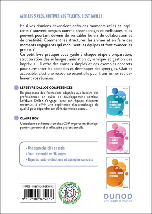 AVEC LES 5 CLÉS, CULTIVER VOS TALENTS, C’EST FACILE !Et si vos réunions devenaient enfin des moments utiles et inspirants ? Souvent perçues comme chronophages et inefficaces, elles peuvent pourtant devenir de véritables leviers de collaboration et de créativité. Comment les structurer, les animer et en faire des moments engageants qui mobilisent les équipes et font avancer les projets ?