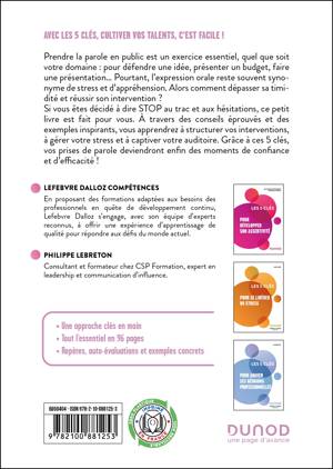 Si vous êtes décidé à dire STOP au trac et aux hésitations, ce petit livre est fait pour vous. À travers des conseils éprouvés et des exemples inspirants, vous apprendrez à structurer vos interventions, à gérer votre stress et à captiver votre auditoire. Grâce à ces 5 clés, vos prises de parole deviendront enfin des moments de confiance et d’efficacité !