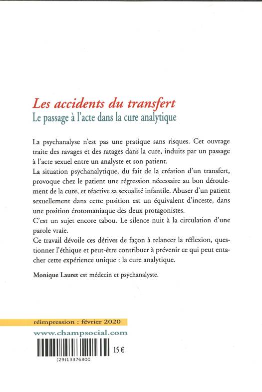 La psychanalyse n’est pas une pratique sans risques. Cet ouvrage traite des ravages et des ratages dans la cure, induits par un passage à l’acte sexuel entre un analyste et son patient. La situation psychanalytique, du fait de la création d’un transfert, provoque chez le patient une régression nécessaire au bon déroulement de la cure, et réactive sa sexualité infantile. Abuser d’un patient sexuellement dans cette position est un équivalent d’inceste, dans une position érotomaniaque des deux protagonistes. C’est un sujet encore tabou. Le silence nuit à la circulation d’une parole vraie. Ce travail dévoile ces dérives de façon à relancer la réflexion, questionner l’éthique et peut-être contribuer à prévenir ce qui peut entacher cette expérience unique : la cure analytique.