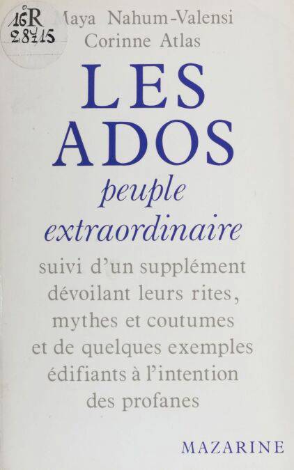 Quelle différence y a-t-il entre un clip canon et un clip super ? Qu'est-ce qu'un keupon, en quoi s'oppose-t-il au bab ? Qui sont les Béruriers Noirs ? À quoi sert un goumi ? Si vous donnez votre langue au chat, vous appartenez à l'espèce des environnants. Votre ignorance de l'espèce ado, avec laquelle vous cohabitez, est affligeante. Qui est Jacques Sauvageot ? Qu'est-ce que des clarks ? D'où viennent les bébés Ogino ? Que vous suggère l'expression Sag Warum ? Si vous séchez, vous êtes un ado. Votre méconnaissance des environnants est inquiétante. Dans les deux cas, vous faites peine à voir. Un seul remède : lisez ce livre. Il vous apprendra tout ce que vous avez toujours voulu savoir (sans oser le demander) sur les ados, peuple extraordinaire, et leurs esclaves, les environnants. Sur les traces du naturaliste J.-H. Fabre, découvrez un monde inconnu. Initiez-vous à ses mystères, percez à jour ses secrets, apprenez ses mots de passe. Bientôt, l'étendue de votre savoir étonnera vos amis. Et, désormais, rien de ce qui est ado ne vous sera étranger.