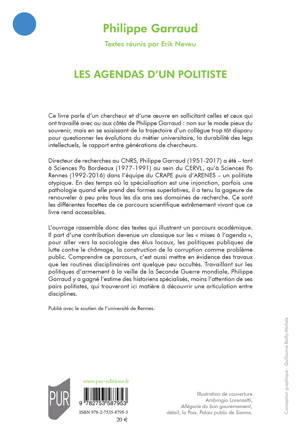 C e livre parle d’un chercheur et d’une oeuvre en sollicitant celles et ceux qui ont travaillé avec ou aux côtés de Philippe Garraud : non sur le mode pieux du souvenir, mais en se saisissant de la trajectoire d’un collègue trop tôt disparu pour questionner les évolutions du métier universitaire, la durabilité des legs intellectuels, le rapport entre générations de chercheurs.