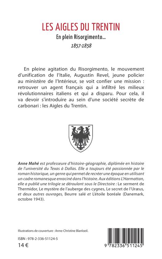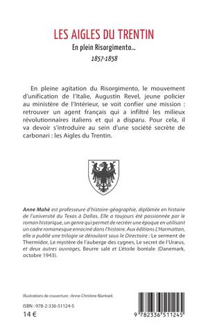 En pleine agitation du Risorgimento, le mouvement d'unification de l'Italie, Augustin Revel, jeune policier au ministère de l'Intérieur, se voit confier une mission: retrouver un agent français qui a infiltré les milieux révolutionnaires italiens et qui a disparu. Pour cela, il va devoir s'introduire au sein d'une société secrète de carbonari: les Aigles du Trentin.