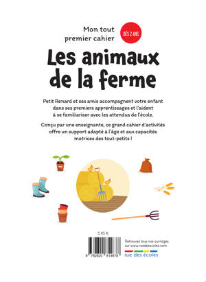 Petit Renard découvre les animaux de la ferme et invite les plus petits à le suivre dans des activités qui les prépareront tout en douceur aux attentes de la petite section de maternelle.