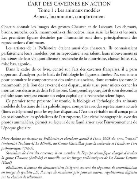 Chacun connaît les images des grottes Chauvet et de Lascaux. Les chevaux, bisons, aurochs, cerfs, mammouths et rhinocéros, mais aussi les lions et les ours. Les premières figures dessinées par l'humanité sont donc principalement des reproductions d'animaux. Les artistes de la Préhistoire étaient aussi des chasseurs. Ils connaissaient parfaitement leurs modèles, ont su reproduire, avec talent, leurs mouvements et les scènes de leur vie quotidienne : recherche de la nourriture, chasse, fuite, rut, mise bas, agonie... Dans le cadre de ce livre, centré sur l'art des cavernes françaises, il a paru opportun d'analyser par le biais de l'éthologie les figures animées. Pas seulement pour connaître le comportement des animaux anciens, dont certains (comme le mammouth et le lion des cavernes) ont disparu, mais aussi pour mieux cerner les motivations des artistes de la Préhistoire. Comprendre pourquoi ils sont descendus peindre sous terre est encore un enjeu capital de la recherche scientifique. Ce premier tome présente l'anatomie, la biologie et l'éthologie des animaux modèles du bestiaire de l'art paléolithique, comparés avec des représentants actuels (lions et éléphants) pour les espèces disparues. C'est un véritable outil conçu pour les passionnés et les spécialistes de l'art rupestre. Une riche iconographie, avec des photos animalières, permet au lecteur de se familiariser avec l'environnement de l'époque glaciaire.
