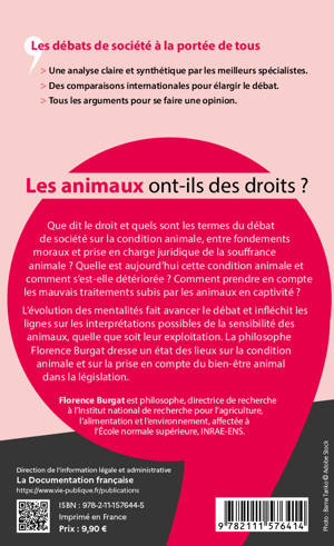 La cause animale est un sujet d’actualité qui oppose deux visions pour lesquelles le statut et le droit des animaux sont très différents. Cet ouvrage fait un état des lieux sur l’élevage, les expérimentations, la pêche, la chasse, la vente d’animaux, les zoos, le trafic d’animaux… et précise les moyens mis en œuvre ou à mettre en œuvre pour améliorer la condition animale. L’auteur compare la législation et les pratiques française en matière de droit des animaux avec l’Europe et l’internationale