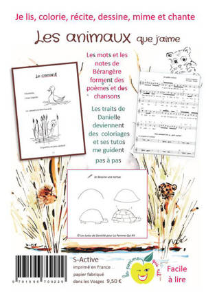 Je lis, colorie, récite, dessine, mime et chante Les animaux que j’aime Les mots et les notes de Bérangère forment des poèmes et des chansons Les traits de Danielle deviennent des coloriages et ses tutos me guident pas à pas