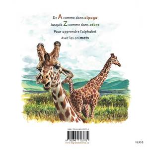 (This book is entirely in French.) A book to learn the alphabet through animal names. De A comme dans alpaga Jusqu'à Z comme dans zèbre Pour apprendre l'alphabet Avec les animots