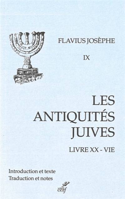 Ce volume final contient deux parties : d'une part, le livre XX des Antiquités, qui couvre l'histoire de la Judée depuis la mort du roi Agrippa Ier en 44, jusqu'en 66, avec les signes avant-coureurs de la guerre de 67-74 d'autre part, une Autobiographie, née d'une seconde édition des Antiquités.