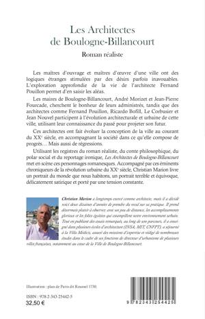 Les maîtres d’ouvrage et maîtres d’oeuvre d’une ville ont des logiques étranges stimulées par des désirs parfois inavouables. L’exploration approfondie de la vie de l’architecte Fernand Pouillon permet d’en saisir les aléas. Les maires de Boulogne-Billancourt, André Morizet et Jean-Pierre Fourcade, cherchent le bonheur de leurs administrés, tandis que des architectes comme Fernand Pouillon, Ricardo Bofill, Le Corbusier et Jean Nouvel participent à l’évolution architecturale et urbaine de cette ville, utilisant leur connaissance du passé pour projeter son futur. Ces architectes ont fait évoluer la conception de la ville au courant du XXe siècle, en accompagnant la société dans ce qu’elle compose de progrès... Mais aussi de régressions.Utilisant les registres du roman réaliste, du conte philosophique, du polar social et du reportage ironique, Les Architectes de Boulogne-Billancourt met en scène ces personnages romanesques.