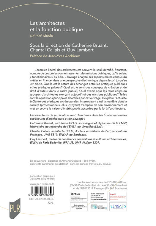 L'exercice libéral des architectes est souvent le seul identifié. Pourtant, nombre de ces professionnels assument des missions publiques, qu'ils soient « fonctionnaires » ou non. L'ouvrage analyse ces aspects moins connus du métier en France, dans une perspective diachronique depuis le XIXe jusqu'au XXIe siècle. Quelle est la nature des échanges entre les pratiques publiques et les pratiques privées ? Quel est le sens des concepts de création et de droit d'auteur dans le cadre public ? Quel avenir pour les rares corps ou groupes d'architectes exerçant aujourd'hui des missions publiques ? Telles sont les questions principales abordées par cet ouvrage. Il explore l'actualité brûlante des pratiques architecturales, interrogeant ainsi la manière dont la société (professionnels, élus, citoyens) s'empare de son environnement et met en oeuvre la valeur d'intérêt public accordée par la loi à l'architecture.
