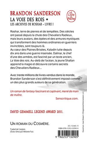 Avec des romans vendus à plus de cinq millions d'exemplaires dans le monde, récompensés par de nombreux prix et comparés à ceux de G.R.R. Martin (Le Trône de fer) et de Robert Jordan (La Roue du Temps), Brandon Sanderson est un auteur phare de sa génération. La Voie des rois ouvre avec brio sa nouvelle saga-événement.