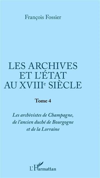 Tome 4 - Les archivistes de Champagne, de l'ancien duché de Bourgogne et de Lorraine