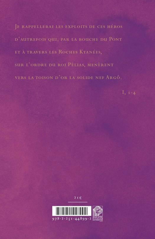Je rappellerai les exploits de ces heros d'autrefois qui, par la bouche du Pont et a travers les Roches Kyanees, sur l'ordre du roi Pelias, menerent vers la toison d'or la solide nef Argo. I, 1-4