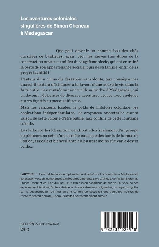 Que peut devenir un homme issu des cités ouvrières de banlieues, ayant vécu les grèves très dures de la construction navale au milieu du vingtième siècle, qui ont entraîné la perte de son appartenance sociale, puis de sa famille, enfin de sa propre identité ? L'auteur d'un crime du désespoir sans doute, aux conséquences duquel il tentera d'échapper à la faveur d'une nouvelle vie dans la fuite outre-mer, centrée sur une vieille mine d'or à Madagascar, qui va devenir l'épicentre de diverses aventures vécues avec quelques autres fugitifs au passé sulfureux. Mais les rancoeurs locales, le poids de l'histoire coloniale, les aspirations indépendantistes, les croyances ancestrales auront raison de cette volonté d'être oublié, aux confins de cette lointaine colonie. La résilience, la rédemption viendront-elles finalement d'un groupe de pêcheurs au sein d'une société nautique des bords de la rade de Toulon, amicale et bienveillante ? Rien n'est moins sûr, car le destin veille...