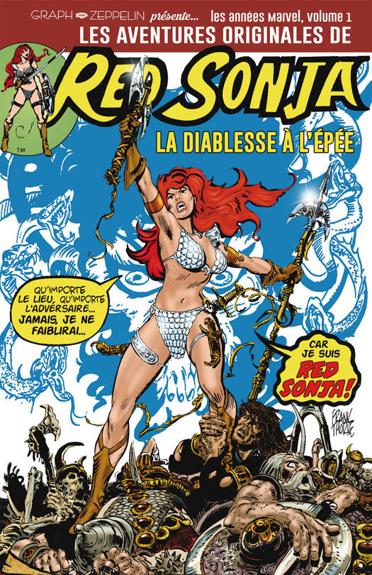 Dans le Monde Hyborien de Conan le barbare, une paysanne des steppes d'Hyrkanie vit ses derniers moments d'insouciance. Des mercenaires font irruption et tuent sa famille avant d'abuser d'elle. Scathach, la déesse rouge, entendant les suppliques de la pauvrette, la pare d'un don pour le maniement des armes qui la rend invincible. Une seule condition : elle ne devra en aucun cas s'adonner à la chair avec un homme qui ne l'aura dominé au combat, Ainsi naît Red Sonja, la diablesse à l'épée et au tempérament revêche. Née d'une nouvelle de Robert E. Howard, le créateur de Conan, et d'un scénario de Roy Thomas, Red Sonja prend corps dans la tenue qu'on lui connaît sous le trait d'Esteban Maroto et prendra son essor dans une série à son nom avec Frank Thorne, en 1975. Ce livre est le premier d'une série de 4.