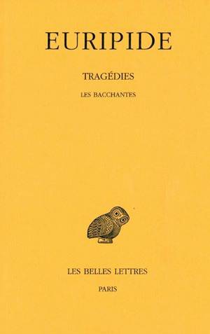 Notre édition des œuvres complètes d’Euripide a choisi d’isoler cette pièce en la présentant dans un volume à part. La notice introductive replace le texte dans l’ensemble de l’œuvre du poète en la situant lors du séjour d’Euripide en Macédoine, chez le tyran Archélaos. Le poète serait alors âgé de plus de 70 ans. La question de la religion, complexe pour celui que l’on surnomme volontiers le « Voltaire grec » est étudiée en détail, de même que les liens avec les autres poètes ayant raconté l’histoire de Dionysos, notamment Eschyle, auteur de deux tétralogies dionysiaques, aujourd’hui perdues, l’une sur Lycurgue et l’autre sur Penthée. L’histoire de la tradition manuscrite est relatée brièvement, tandis que des notes accompagnent la lecture. L’ouvrage est en outre enrichi des fragments attribués aux Bacchantes ainsi que des fragments papyrologiques.