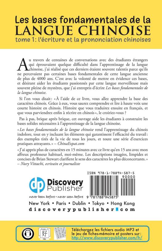 Les bases fondamentales de la langue chinoise: les bases de l'écriture et de la prononciation chinoises est le premier volume de la série Les bases fondamentales de la langue chinoise. Cet ouvrage est recommandé pour les débutants n'ayant aucune connaissance préalable de la langue chinoise.