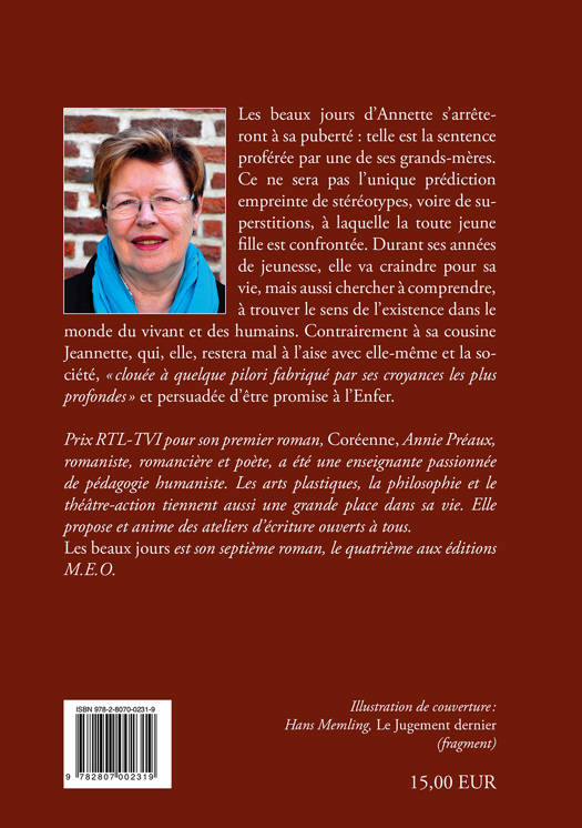 Les beaux jours d'Annette s'arrêteront à sa puberté : telle est la sentence proférée par une de ses grands-mères. Ce ne sera pas l'unique prédiction empreinte de stéréotypes, voire de superstitions, à laquelle la toute jeune fille est confrontée. Durant ses années de jeunesse, elle va craindre pour sa vie, mais aussi chercher à comprendre, à trouver le sens de l'existence dans le monde du vivant et des humains. Contrairement à sa cousine Jeannette, qui, elle, restera mal à l'aise avec elle-même et la société, « clouée à quelque pilori fabriqué par ses croyances les plus profondes » et persuadée d'être promise à l'Enfer.