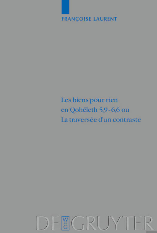 This French work presents an exegetic and theological interpretation of Qoheleth's speech on riches (Ecclesiastes 5:9-6:6). The detailed exegetic analysis distinguishes the existential meaning from the anthropological and theological meaning, and develops a rhetorical figure of wisdom which is characterised by two aspects - either the denial of God or the reference to God. Using a parallel to the Book of Job, the intertextuality of the discourse of wisdom becomes clear.