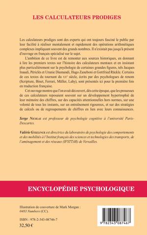 Les calculateurs prodiges ont toujours fasciné le public par leur facilité à réaliser mentalement et rapidement des opérations arithmétiques complexes impliquant souvent des grands nombres. Ce livre donne à lire les premiers textes sur l'histoire des calculateurs mentaux (tels que Jacques Inaudi, Périclès et Uranie Diamandi, Hugo Zaneboni et Gottfried Rückle). Certains de ces textes du tournant du XXe siècle, écrits par des psychologues de renom (Scripture, Binet, Ferrari, Müller, Lahy), sont présentés ici pour la première fois en traduction française.