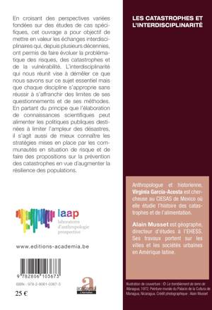 En croisant des perspectives variées fondées sur des études de cas spécifiques, cet ouvrage a pour objectif de mettre en valeur les échanges interdisciplinaires qui, depuis plusieurs décennies, ont permis de faire évoluer la problématique des risques, des catastrophes et de la vulnérabilité. L'interdisciplinarité qui nous réunit vise à démêler ce que nous savons sur ce sujet essentiel mais que chaque discipline s'approprie sans réussir à s'affranchir des limites de ses questionnements et de ses méthodes.